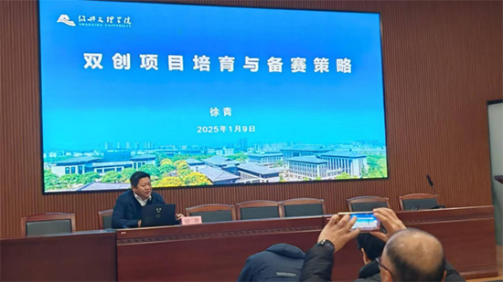 活動中,紹興文理學院書記徐青帶來了題為《雙創項目培育與備賽策略》的講座。他深入剖析了歷屆參賽項目的常見問題,并強調中職生的雙創教育應更加注重學生在項目中的實際參與度。徐青指出,職教類項目的“創新”應體現在產教融合、校企合作、工作一體化等模式的創新上,同時鼓勵面向職業和崗位的創意及創新,如加工工藝創新、實用技術創新等,同時鼓勵面向職業和崗位的創意及創新,側重加工工藝創新、實用技術創新、產品或技術的改良、應用性優化,民生類創意等。徐青給在場的教師們詳細地講解了雙創比賽的備賽策略,他指出,參加雙創比賽的選題的切入點要小,結合市場需求和行業痛點,建議單點切入,需求痛點和解決方案要對應或按照產業鏈中某一環節進行破題。