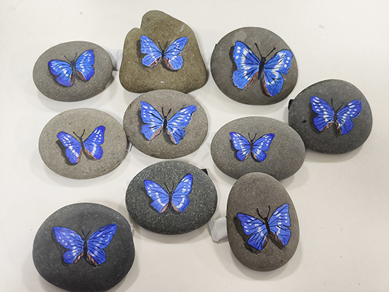學(xué)校特聘安吉縣石畫非遺傳承人施娟云做精品課程的教師。針對(duì)老年學(xué)習(xí)者的認(rèn)知特點(diǎn),課程分初級(jí)、中級(jí)、高級(jí)三部分,每一部分都有五個(gè)內(nèi)容,循序漸進(jìn),由簡(jiǎn)入繁,期間穿插各種題材示范案例,充分凸顯安吉生態(tài)特色。共開課40學(xué)時(shí),包括去大自然采集石頭、每周集中學(xué)習(xí)、課后看視頻鞏固并創(chuàng)作。