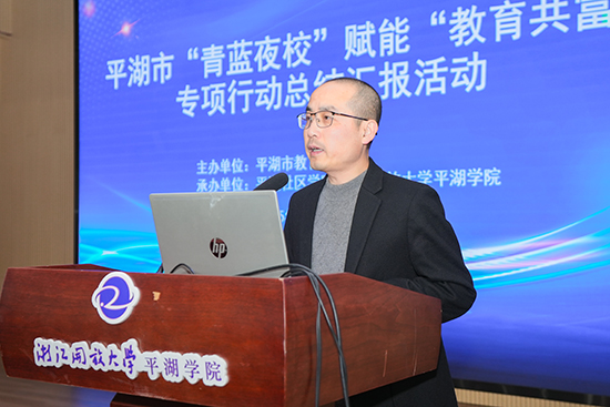 1月8日下午,浙江省平湖市“青藍夜校”賦能“教育共富”專項行動總結(jié)匯報活動在浙江開放大學平湖學院(平湖社區(qū)學院)報告廳拉開序幕。本次活動旨在回顧過去一年的工作成果,展望未來的發(fā)展方向,推動新時代“夜校”服務品牌的進一步提升。浙江開放大學黨委委員、副校長、浙江省社區(qū)教育指導中心副主任張吉先,嘉興市教育局、嘉興開放大學、平湖市委社會工作部、平湖團市委、平湖市教育局等相關(guān)部門分管負責人出席活動。活動由平湖市教育局職教成教科科長李豐主持。