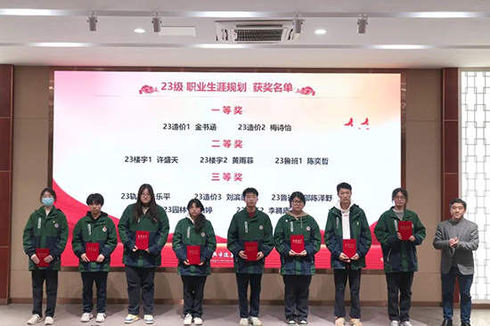 宣講結(jié)束后進(jìn)行了頒獎儀式。范曉春和龔磊分別為榮獲23級職業(yè)生涯規(guī)劃獎項和24級美麗中國獎項的同學(xué)們頒發(fā)了榮譽(yù)證書,并合影留念。