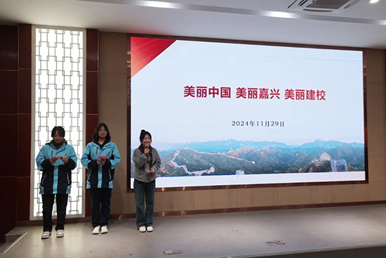 第三組宣講的成員是思政教研組張月月老師、24藝術(shù)大專班駱俞瑤同學(xué)和24園林大專班徐堂清同學(xué)。張月月從美麗中國生態(tài)文明建設(shè)的角度出發(fā),談到嘉興在無廢城市建設(shè)方面采取的典型舉措和取得的突出成績。兩位學(xué)生從校園美、活動美、實(shí)踐美和專業(yè)美四個角度,展示了學(xué)校在文明校園建設(shè)方面的重要成果。