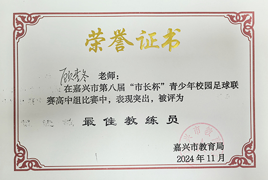 在剛剛落幕的嘉興市第八屆“市長杯”青少年校園足球聯賽中職組比賽中,嘉興市建筑工業學校男子足球隊憑借精湛的球技與頑強的拼搏精神,一路過關斬將,勇奪冠軍,顧李冬老師獲“最佳教練員”稱號,23施工大專4班任金睿同學獲“最佳球員”稱號。這已是學校男子足球隊連續第三年斬獲該項賽事的桂冠,充分彰顯了學校在足球人才培養方面的雄厚實力與顯著成效。