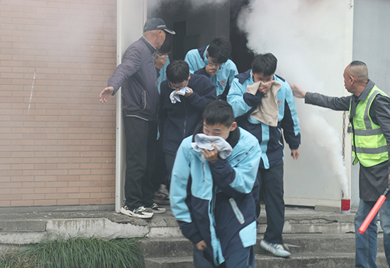 講座結束以后,全體學生回到寢室,下午16時,隨著急促的警報聲響起,消防演練拉開序幕。各指導教師迅速組織同學們拿起濕毛巾、捂住口鼻、彎腰低頭,按照應急預案的疏散路線,迅速地撤離到安全地帶,并及時清點有無人員傷亡。整個疏散過程,行動迅速,不慌不亂,安全有序,師生們表現出了良好的應急逃生能力。校醫全程參與了演練活動,提供好醫療保障。
