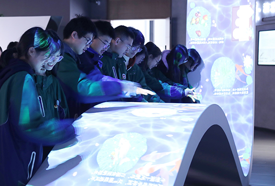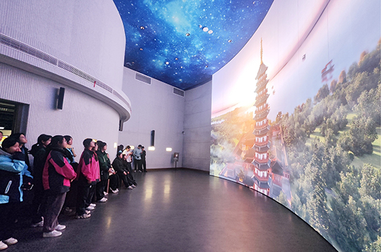 移步換景間,一行人來到大運河數(shù)字詩路e站南湖體驗中心。該館內(nèi)以大運河文化為核心,借助虛擬現(xiàn)實、互動投影等前沿數(shù)字技術(shù),將千年運河的歷史變遷、地理風(fēng)貌、人文故事生動展現(xiàn)。師生一行有序參觀、積極互動,深度領(lǐng)略了千年運河文化的底蘊和魅力。