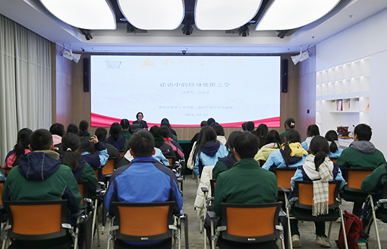 參觀結(jié)束后,竹弘祿為師生帶來主題為《論語中的修身處世》專題講座。竹弘祿引經(jīng)據(jù)典,深入淺出地闡述了《論語》中所蘊含的修身之道。同時,她圍繞“學(xué)什么、學(xué)習(xí)應(yīng)抱什么態(tài)度、如何學(xué)”等幾方面內(nèi)容,重點講解了“學(xué)”好修身之道的重要性。