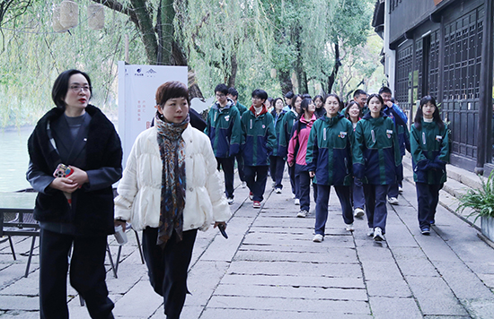 蘆席匯作為嘉興歷史文化的重要載體,其古色古香的建筑風(fēng)格、獨特的水鄉(xiāng)布局深深吸引著師生的目光。在中國孔子基金會孔子學(xué)堂推進委員會副主任竹弘祿的帶領(lǐng)下,師生漫步于街巷之間,靜靜感受蘆席匯歷史街區(qū)的古樸韻致與歲月沉香。