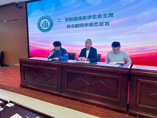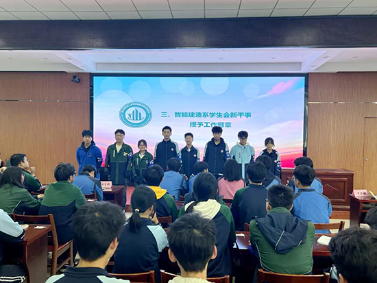 會上,許韜宣布了2024學年智能建造系主要學生干部名單,并希望受聘任的學生干部能夠恪盡職守,團結帶領智能建造系學生會再創佳績。作為新一屆學生會主席的陳志鵬代表學生干部作表態發言,他表示將不斷加強學生組織內部建設,提高工作效率,創新工作方式,豐富學生活動內容,打造智能建造系學生會品牌,為校園文化建設添磚加瓦。學期開學至今學生會順利完成了招新工作,通過試用期的工作最終確定了26名2024級學生會新干事。作為新老傳承,由各部門部長為新干事們授予了工作臂章。