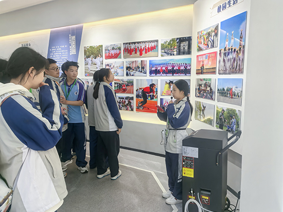 此次活動采取分批參觀形式進行,每周組織一個學部的學生參觀。校史館內,一張張珍貴的照片成為歷史的見證。由24級導游班7名學生和23市政班1名學生共同組成的講解團,輪流上陣,他們用生動語言將學生的發展歷程娓娓道來,從建校初心到辦學成果,從專業發展到杰出校友事跡,無一不涵蓋其中。高一學生們在照片前久久駐足,從黑白影像中深切感受往昔歲月的痕跡,從電子相冊的光影流轉里領略學校日新月異的變遷。這一刻,他們仿佛與先輩們進行了一場跨越時空的對話,心中充滿了對學校歷史的敬畏與對未來的憧憬。