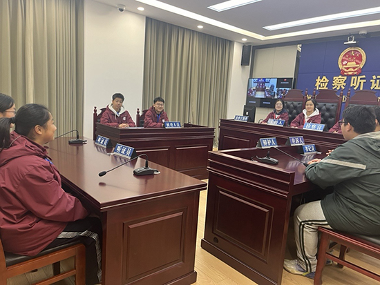 12月4日中午,為了讓師生更直觀地感受法治氛圍,活動還特別安排了參觀富陽區人民檢察院的行程。在三位檢察官的帶領下,大家參觀了辦案區、控告申訴接待室等場所,了解了檢察機關的職能和工作流程。檢察官還分別圍繞“憲法、民法典、刑法、勞動法”等與群眾生活密切相關的法律法規進行詳細解讀。通過這次參觀,師生們深刻體會到了法律的嚴肅性和公正性,進一步增強了法治觀念。