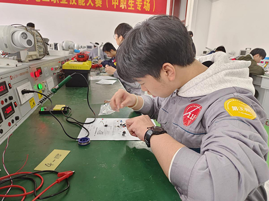 技高一籌映華彩,匠心獨運展風華。這次電工職業(yè)技能競賽為學生提供了一個展示自己技能的平臺,通過參與比賽,學生能夠?qū)⒆约旱乃鶎W知識應用于實踐中,鍛煉實際操作能力。同時,比賽中的成功和進步也能極大增強學生的自信心,為他們未來的職業(yè)發(fā)展奠定堅實基礎。同時這場比賽也是職業(yè)教育改革與發(fā)展的重要推動力。學校依托技能競賽,堅持“以賽促教、以賽促學、以賽促改、以賽促建”,推動建設高質(zhì)量教育教學體系,提升技能人才培養(yǎng)水平,助力職業(yè)教育向更高質(zhì)量、更高水平發(fā)展。(吳逸愷)