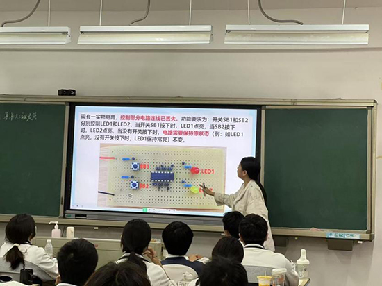 13日上午,工作室活動轉入授課階段。柳市職業技術學校葉艷艷老師在公開課《8.1基本RS觸發器》中,采用多媒體和實物展示,引導學生了解基本RS觸發器的電路結構、概念和邏輯符號,激發了學生的學習興趣。接著,她詳細講解了電路結構特點,并讓學生自行選擇輸入和連接方式,隨后進行點評和詳細講解。在講解工作原理時,葉老師組織小組討論,提出問題引導學生交流,詳細解釋輸入狀態變化時輸出狀態的變化。最后,葉老師留下疑問,鼓勵學生課后自學,為下節課做鋪墊。整堂課內容豐富,互動性強,有助于學生深入理解基本RS觸發器的相關知識。