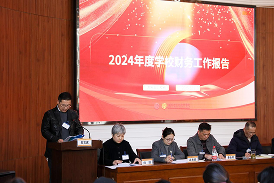 隨后,副校長沈慶軍向大會作財務工作報告,詳細匯報了2024年度學校財務支出、凈資產、在職在編教職工人均收入情況,并提出今后在預算執行、工作效率、資金安全等方面進一步優化的建議。