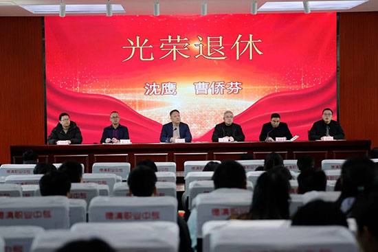 1月20日,德清職業(yè)中專為沈鷹和曹僑芬兩位教職工舉辦了隆重的榮休儀式,全體教職工共同見(jiàn)證了兩位為學(xué)校默默奉獻(xiàn)多年老同事的光榮退休。儀式由縣職業(yè)教育黨委委員、德清縣職業(yè)中專副校長(zhǎng)高陽(yáng)會(huì)主持。