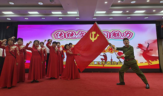 遂昌縣教師發(fā)展中心五樓多功能室還舉行了匯報(bào)演出,共呈現(xiàn) 11 個(gè)節(jié)目。其中,有服裝絢麗、舞姿優(yōu)美的《相遇》《娥嫚》等舞蹈;有盡顯旗袍韻味的《祝福祖國》旗袍秀;有剛?cè)岵?jì)的太極拳表演;還有技藝精湛的越劇《十八相送》、幽默詼諧的三句半,以及遂昌 “快板奶奶” 自編自演、節(jié)奏明快的《退教協(xié)會(huì)活動(dòng)多》。最后,越劇《沒有共產(chǎn)黨就沒有新中國》將演出推向高潮,充分展現(xiàn)了遂昌銀齡教師的精神風(fēng)貌,為領(lǐng)導(dǎo)嘉賓獻(xiàn)上了一場視覺盛宴。