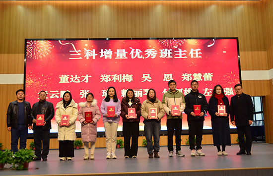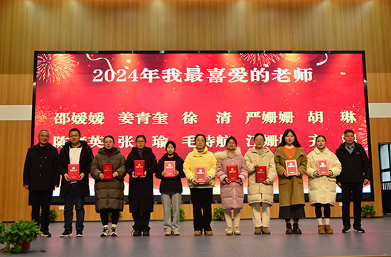 會議伊始,學校對過去一年中表現突出的教師進行了表彰。其中,“年度之星”“我最喜愛的老師”“班級管理先進個人”等榮譽稱號的獲得者依次上臺領獎。