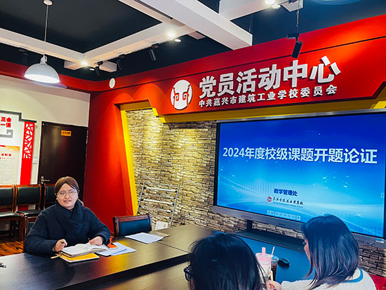 為進一步發揮教科研工作的引領作用,增強課題研究的針對性和實效性,提升教師教育科研能力,期末階段嘉興市建筑工業學校舉行新一批校級課題開題論證活動。校內學術委員會成員李娟、沈娟、蔣山花等進行課題現場指導,教學管理處副主任朱佳穎主持此次活動,4位校級課題負責人全程參與。