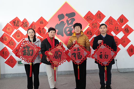 校黨委書記范曉春與硯邊歲月書法社骨干成員徐新奇、鄭強勝、蔣雪揚、許韜等共同參與,特邀學校黨建共同體單位嘉興大學建工學院黨委書記童勇軍以及國家級工藝美術大師童人杰,省書協會員柴林根、江軍和塘匯街道人大工委主任張玨一行來校,共同參與寫福送春聯活動,現場洋溢著一派其樂融融、福氣滿滿的祥和氛圍。