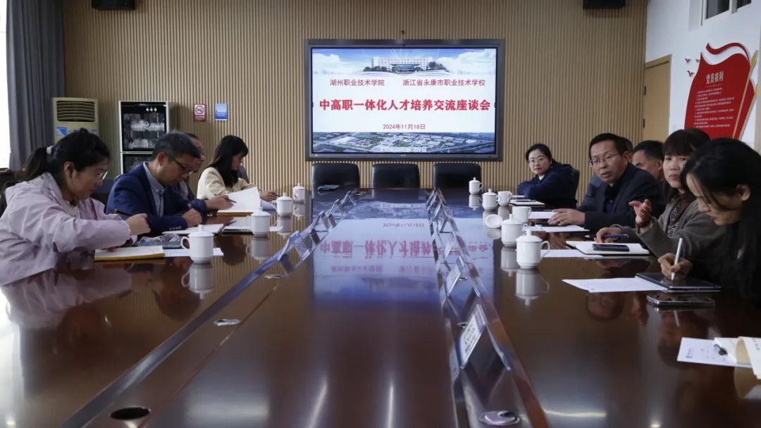 胡國榮則詳細(xì)介紹了湖州職業(yè)技術(shù)學(xué)院的長遠(yuǎn)發(fā)展規(guī)劃、新校區(qū)建設(shè)情況以及二級學(xué)院的設(shè)置現(xiàn)狀。他表達(dá)了對兩校未來進(jìn)一步加強(qiáng)溝通交流的期待,并希望雙方能夠聚焦核心課程、教育教學(xué)等關(guān)鍵銜接環(huán)節(jié),共同推動(dòng)優(yōu)勢互補(bǔ)、創(chuàng)新融合的中高職一體化協(xié)同育人模式,不斷提升人才培養(yǎng)的質(zhì)量與水平。