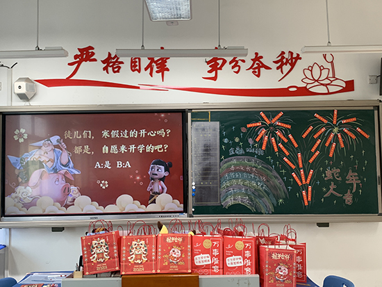 走進教室,氛圍愈發濃厚,班主任們精心布置,儀式感滿滿。紅包里藏著老師精心準備的寄語,激勵同學們在新的一年勇敢前行;一顆顆甜蜜的棒棒糖,象征著同學們對未來生活的美好憧憬;“旺仔牛奶”承載著老師對同學們新學年身體強壯、學業進步的美好期許。