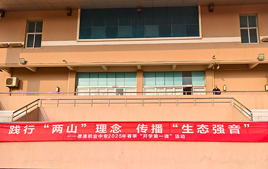 2月17日上午,在春日的暖陽中,學校開展了以“踐行‘兩山’理念,傳播生態強音”為主題的開學第一課活動,德清縣職業教育黨委副書記、學校副校長呂夢非在活動中向師生們傳達了“綠水青山就是金山銀山”的生態理念,闡述了生態環境保護的重要性;并以德清本地案例為切入點,生動講述了“兩山”理論的實踐成果。他號召學生們在學習中不僅要掌握技術,更要樹立綠色發展的理念,從身邊小事做起,節約資源、保護環境,爭做生態文明的踐行者和傳播者,為德清的生態文明和綠色產業發展貢獻自己的青春力量。