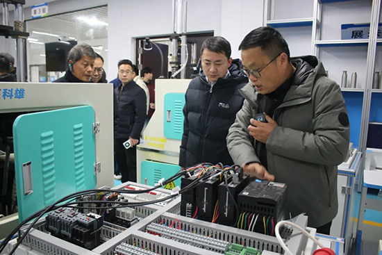 在工程實(shí)踐中心,考察團(tuán)實(shí)地走訪模具智能制造中心,認(rèn)真聆聽了學(xué)生志愿者的詳細(xì)介紹,感受學(xué)校智能制造專業(yè)群與生產(chǎn)實(shí)踐的深度融合。隨后,考察團(tuán)參觀了世界技能大賽可再生能源項(xiàng)目中國(guó)集訓(xùn)基地,觀摩了智能裝備學(xué)習(xí)工作站和智能控制學(xué)習(xí)工作站??疾靾F(tuán)成員對(duì)學(xué)校“以賽促學(xué)、以產(chǎn)促教”的做法及成果表示高度認(rèn)可。