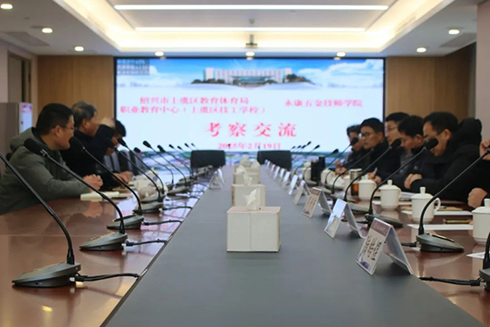 2月19日上午,為扎實(shí)推進(jìn)上虞區(qū)職教園和現(xiàn)代職業(yè)教育體系建設(shè),在紹興市上虞區(qū)教體局黨委委員、副局長(zhǎng)陳炯軍帶隊(duì)下,紹興市上虞區(qū)教體局、教體集團(tuán)、職業(yè)教育中心(上虞區(qū)技工學(xué)校)一行12人專程來(lái)永康五金技師學(xué)院考察交流。學(xué)校常務(wù)副院長(zhǎng)王鐘寶,黨委委員馬林剛、田雪萌等領(lǐng)導(dǎo)參加此次交流活動(dòng)。