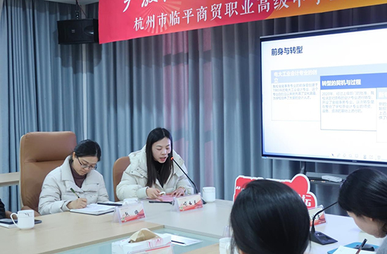 電商專業教研組長趙也、金融事務專業教研組長喻云蘭分別從教研組概況、師資隊伍建設、專業發展等方面分別介紹了學校電子商務、金融事務的專業建設情況。