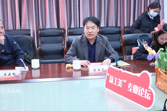 工藝美術專業教研組組長回志宏從專業概況、教師培養、專業建設、教學成果等方面介紹了學校美術專業的基本情況。