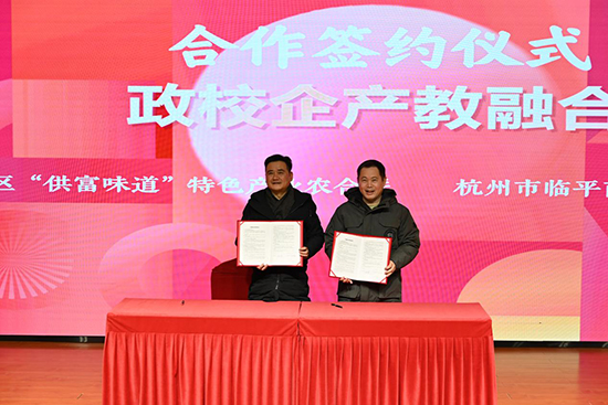為了推動教學與實踐深度融合,助力臨平特色農業產業發展,杭州市臨平商貿職業高級中學集團理事長、校長沈琪與臨平區“供富味道”特色產業農合聯理事長鄔珉瑋簽訂合約,以產業需求為導向,開展深度合作。