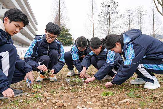 “老師,我在石縫里找到了一顆,太不可思議了!”有同學(xué)因?yàn)樵谑p中發(fā)現(xiàn)了薺菜發(fā)出驚呼。“為什么長(zhǎng)在石縫里?背陽(yáng)也能生長(zhǎng)嗎?”面對(duì)同學(xué)們的好奇心,孫老師解釋道:“薺菜的耐寒性強(qiáng),適應(yīng)力強(qiáng),清高自守。它的生長(zhǎng)幾乎不受外界的影響,哪怕光照少一些,哪怕被數(shù)次踩踏,在貧瘠的土地甚至是石縫都能肆意生長(zhǎng)。它是頑強(qiáng)、堅(jiān)韌、高潔的象征。”