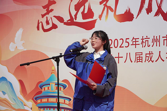 2202班趙林同學帶領全體學生進行了成人禮宣誓,鏗鏘有力的誓言回蕩在操場上空,展現了學生們堅定的信念與決心。他們莊嚴承諾,將肩負起作為成年公民的責任,努力成為社會的棟梁之材。