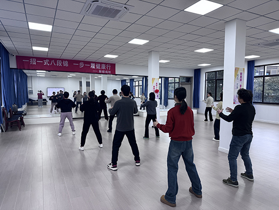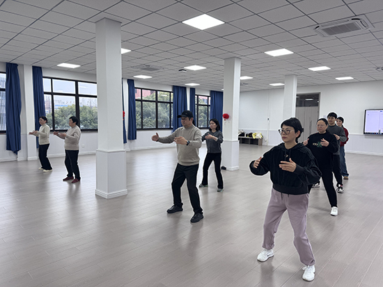 培訓(xùn)中,教練開始八段錦預(yù)備式樁功練習(xí)、兩手托天理三焦、左右開弓似射雕教學(xué),并進(jìn)行逐式拆解動作細(xì)節(jié),強(qiáng)調(diào)呼吸與動作的協(xié)調(diào)配合。教職工們認(rèn)真學(xué)習(xí)、反復(fù)練習(xí),在舒展筋骨的沉浸式體驗中感受傳統(tǒng)養(yǎng)生功法的獨(dú)特魅力。不少教師表示:“一套動作下來,肩頸放松了,精神也煥然一新,特別適合久坐伏案的職場人。”