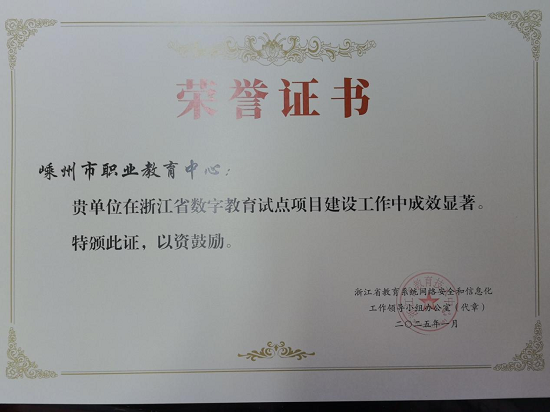 近日,嵊州市職業(yè)教育中心在浙江省數(shù)字教育試點項目建設(shè)中取得了顯著成效,并順利完成了省信息化標桿校的建設(shè)任務(wù)。這一成果得到了浙江省教育技術(shù)中心的高度認可,并寄來了“喜報”。