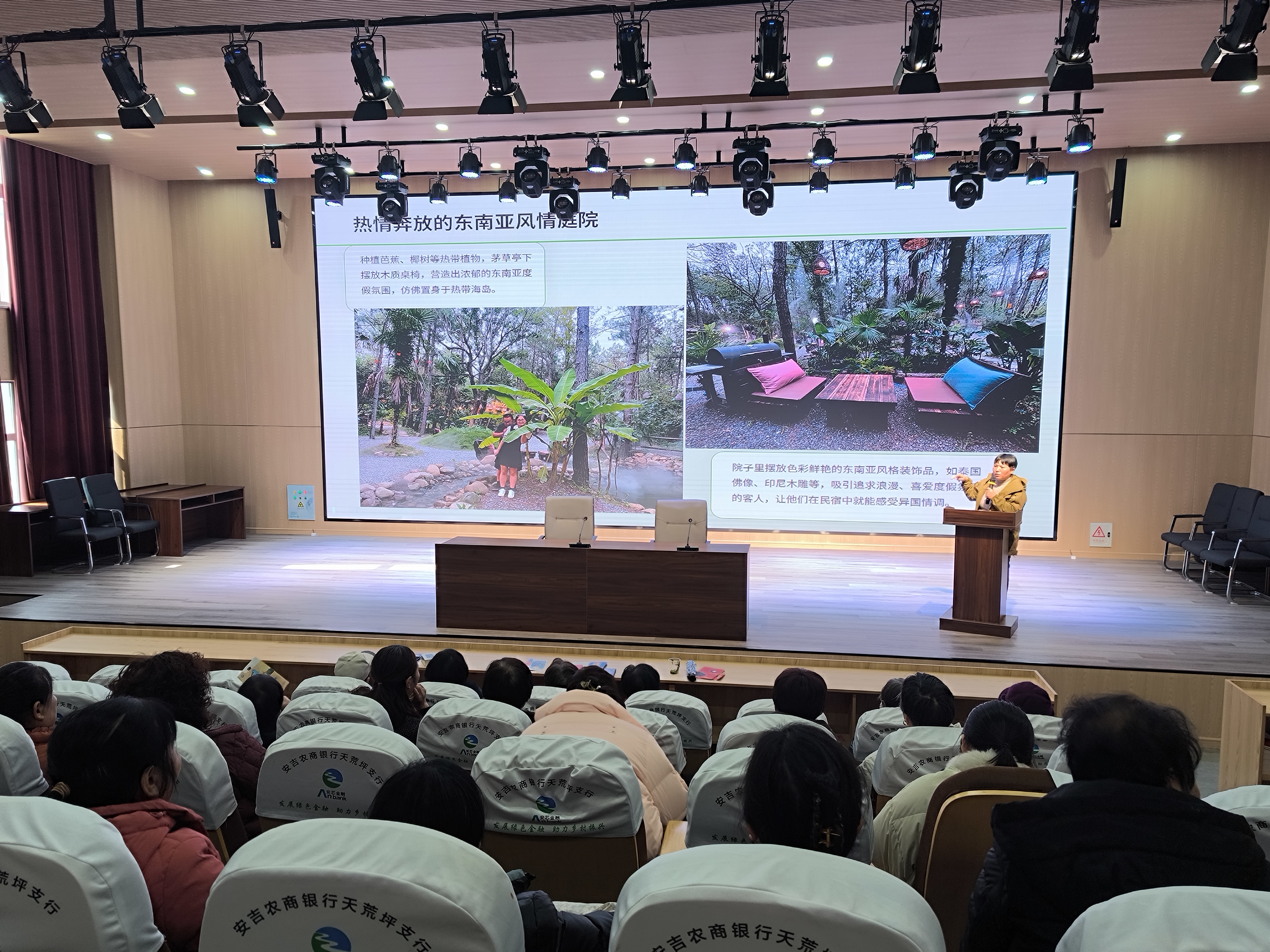 培訓(xùn)首環(huán)節(jié)聚焦家庭庭院美化。活動(dòng)緊扣“美化庭院·幸福生活”主題,設(shè)計(jì)了“園藝知識(shí)講堂”“創(chuàng)意微景觀制作”“庭院改造案例分享”三大板塊。成校特邀安吉家興園林綠化有限公司負(fù)責(zé)人、高級(jí)園林工程師自健仙女士,系統(tǒng)講解庭院規(guī)劃、綠植養(yǎng)護(hù)、色彩搭配等知識(shí),特別針對(duì)農(nóng)村庭院特點(diǎn),從綠植搭配、空間布局、廢舊物品改造等方面進(jìn)行講解,傳授低成本改造技巧。