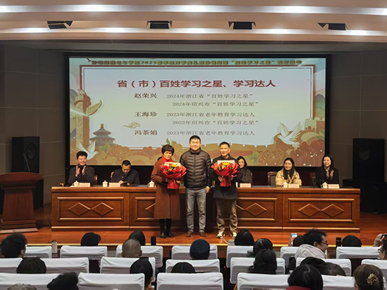 開學典禮在莊嚴的國歌聲中拉開序幕。孫端街道辦事處社事辦洪佳寧主任宣讀了優秀學員、才藝獎、“鄉村振興”優秀志愿者、百姓學習之星、學習達人等受表彰人員名單。在過去一年中,有29位學員在老年學校日常學習期間表現優秀,有39位學員在各級各類比賽活動中取得優異成績,有14位學員在助力“文化賦能 鄉村振興”行動中表現突出,有10位各村推薦的同志被評為孫端街道2024年“百姓學習之星”。趙鐵峰副主任、王雪丹副主任、王招麗委員、車軍妍副局長分別為他們頒獎,街道黨工委副書記、辦事處主任謝煒為往年的省、市級百姓學習之星、學習達人送上鮮花,表示祝賀。獲獎代表表示,將珍惜在孫端老年學校的學習生活,發揮自身余熱,共同努力把老年學校辦得越來越好。