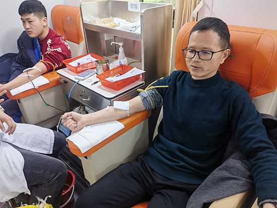 上午八時,區中心血庫采血車周圍師生陸續聚集,獻血師生們在學生志愿者的暖心引導,醫務人員的溫馨提醒下依次完成健康篩查、血液初檢等準備,陸續踏上采血車進行獻血。采血車里,徐老師剛剛結束獻血,醫生將400cc的血袋放入箱內,徐老師面帶微笑并鼓勵旁邊等候的同學:“適量獻血對身體無害,同學們放松一點。”手中的獻血證,密密麻麻的記錄,代表著職教中心教師們多年來參與生命接力義舉,滿18周歲的同學們也用自己的實際行動,奉獻著新的青春力量。9時30分,活動現場人聲鼎沸,達到高峰。
