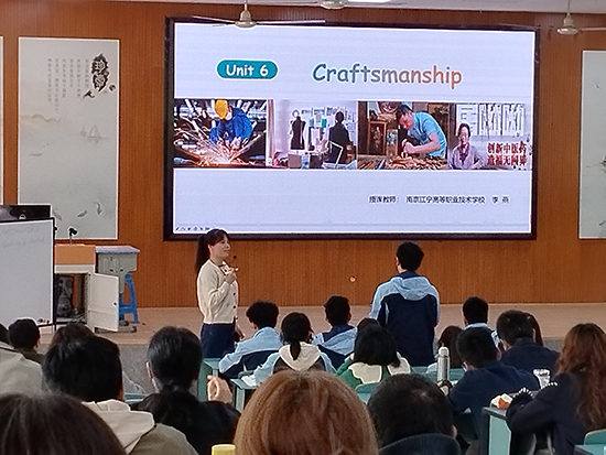 下午的教學(xué)觀摩環(huán)節(jié)同樣精彩紛呈。張俊團(tuán)隊(duì)成員——李燕老師以一堂生動(dòng)的示范課《Craftsmanship》,向大家展示了新教材背景下的教學(xué)創(chuàng)新與課堂實(shí)踐。李老師的課堂設(shè)計(jì)科學(xué)嚴(yán)謹(jǐn),教學(xué)環(huán)節(jié)銜接流暢,充分體現(xiàn)了任務(wù)驅(qū)動(dòng)、情境融入、師生互動(dòng)等先進(jìn)教學(xué)理念,贏得了在場(chǎng)教師的高度認(rèn)可。示范課后,李燕老師詳細(xì)闡述了課程設(shè)計(jì)思路與教學(xué)感受,分享了自己在教學(xué)實(shí)踐中的思考與體會(huì)。