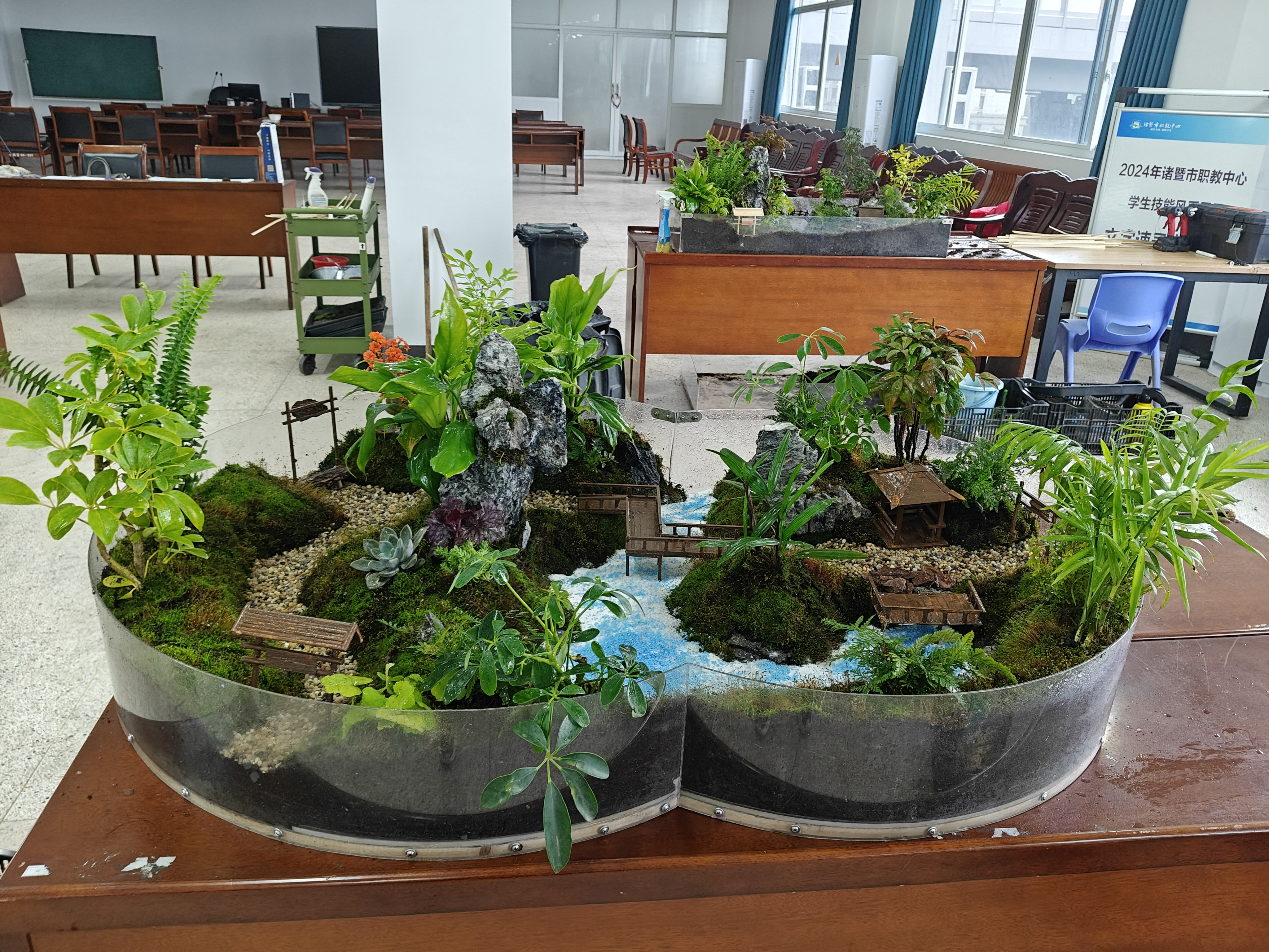 在微景觀設(shè)計(jì)與制作項(xiàng)目中,參賽團(tuán)隊(duì)需要在規(guī)定的兩小時(shí)內(nèi),根據(jù)自定的主題和容器等器材,完成園林微景觀的設(shè)計(jì)與制作。選手們充分發(fā)揮創(chuàng)意,巧妙構(gòu)思,將園林美學(xué)與實(shí)際操作技能相結(jié)合,呈現(xiàn)出一個(gè)個(gè)精美絕倫的微景觀作品。他們互相配合,合理安排工作流程,安全施工,最終成功協(xié)作完成了園林微景觀的制作。這一過(guò)程中,不僅展現(xiàn)了學(xué)生們的專業(yè)技能,更體現(xiàn)了他們團(tuán)隊(duì)協(xié)作和解決問(wèn)題的能力。(黃靈平)