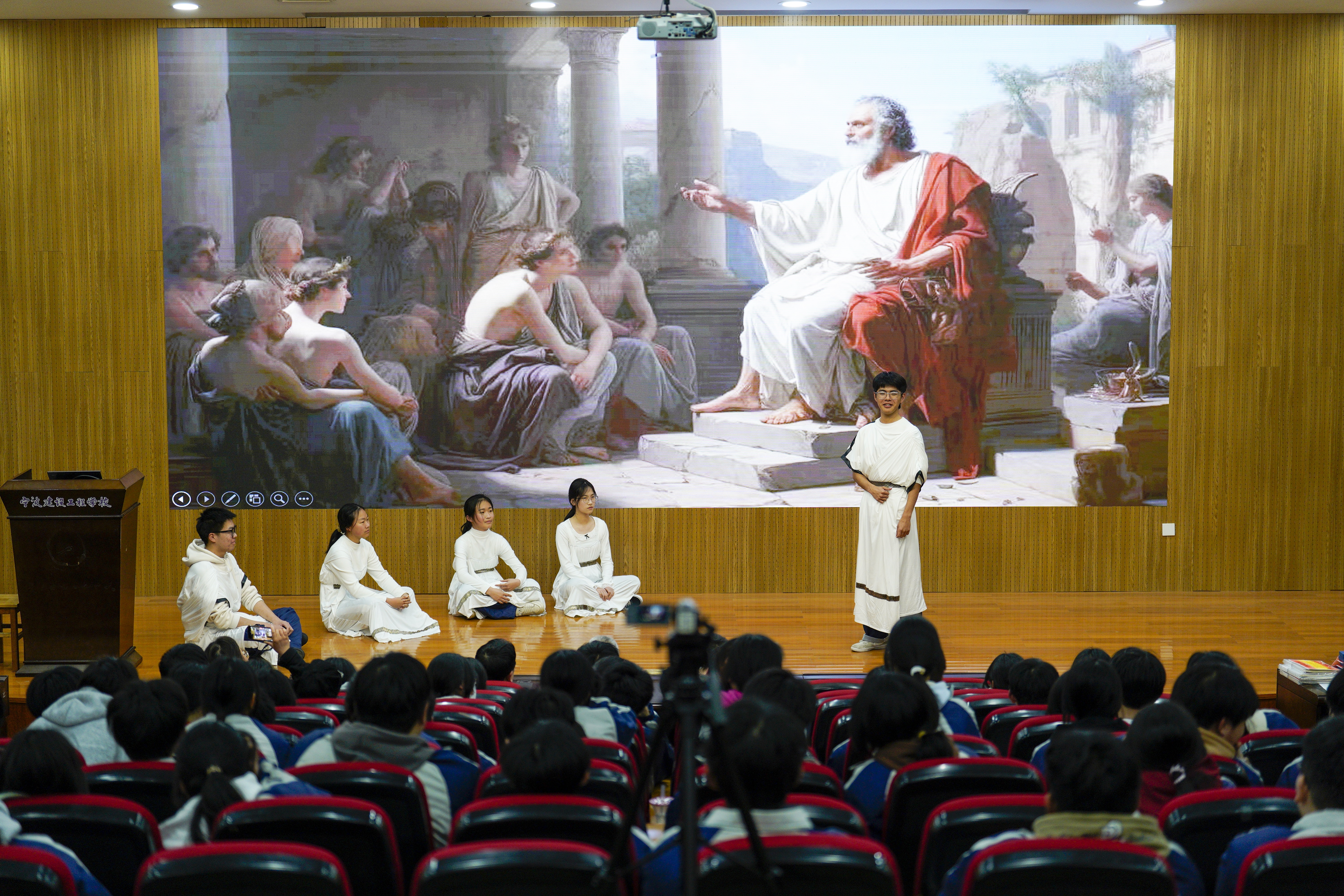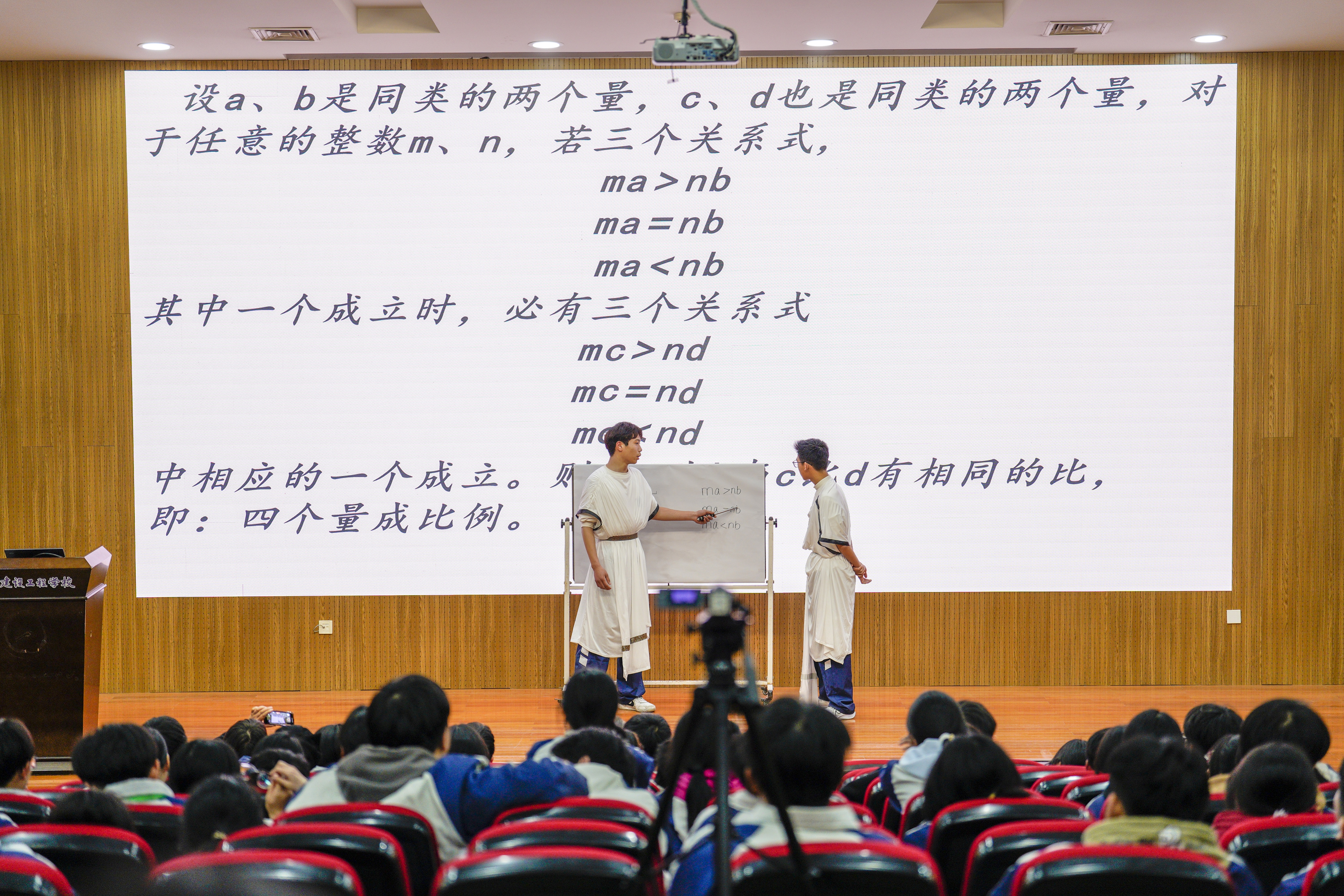 師生共創的話劇《第一次數學危機——無理數的出現》在寧建校園掀起認知風暴。學生演員披著古希臘長袍,將公元前5世紀“無理數發現者”希帕索斯被沉海的科學公案以及歐多克斯的解決方案搬上舞臺。“畢達哥拉斯學派拒絕承認√2的存在,就像我們曾經害怕數學一樣。”飾演主角的李浩軒深有體會。臺下,數學教研組長潘海亞發現,那些曾抱怨“數學無用”的學生此刻眼中閃著光。