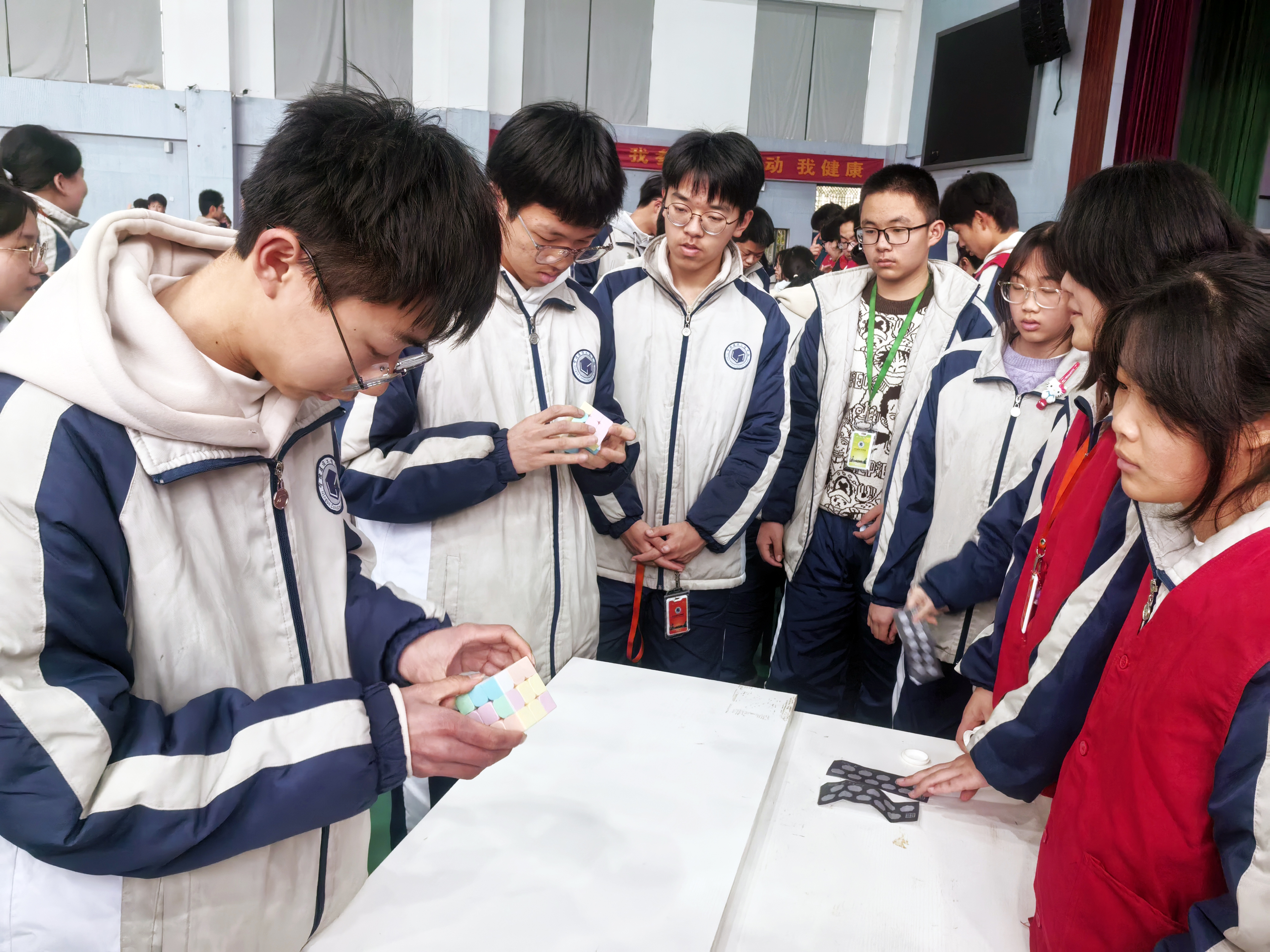 教學副校長趙葉宏透露,今年特意將數學節延長為30天的“探索季”,讓每位學生都能發現數學的奧秘。3月13日的數學游園會上,同學們在魔方的世界里找到數學自信:“魔方每個面的旋轉角度都是數學的應用。”從七巧板美學大挑戰到24點速算腦力的終極PK,從華容道比拼到“一筆畫”的燒腦解密,再到魔方的指尖飛舞,這些活動打破了“數學是天才的學科”的刻板印象。本次數學節還同步發起“數韻之美”創意活動,鼓勵學生以“專業靈感+數學思維”在彭羅斯密鋪主題海報上自由創作,在實踐中體悟數理與美學的交融。