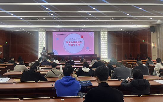 為進(jìn)一步增強(qiáng)班主任對(duì)學(xué)生的心理關(guān)懷與輔導(dǎo)能力,建立和諧、積極的師生關(guān)系,賦能班主任隊(duì)伍專業(yè)化發(fā)展,3月11日,嘉興市建筑工業(yè)學(xué)校特邀嘉興市秀洲區(qū)康安醫(yī)院院長、黨支部書記沈明芳來校,為全體班主任開展《學(xué)生心理問題識(shí)別與干預(yù)》專題講座。學(xué)生處副主任陳云華主持講座。