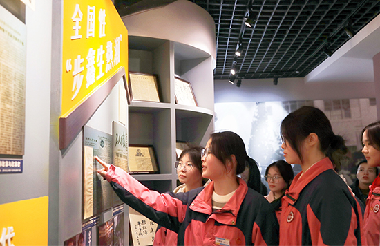師生認(rèn)真聆聽講解,不時(shí)駐足觀看。互動(dòng)交流環(huán)節(jié)中,學(xué)生積極提問,與講解員、老師深入探討步鑫生改革精神與當(dāng)代青年責(zé)任擔(dān)當(dāng)?shù)穆?lián)系。