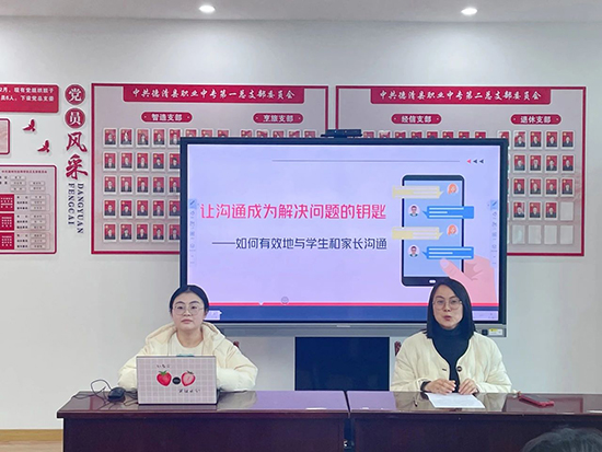 “沒有溝通,就沒有教育。”良好的溝通是建立和諧師生關系、家校關系的基礎,也是解決班級管理問題的關鍵。為了幫助新教師們更好地掌握溝通技巧,提升班級管理能力,3月14日,德清職業中專開展了主題為“讓溝通成為解決問題的鑰匙——如何有效地與學生和家長溝通”的培訓會。會議邀請了浙江省名班主任工作室領銜人丁晶星和湖州市名班主任工作室領銜人顧國蓮聯合指導。