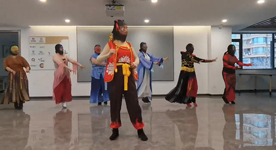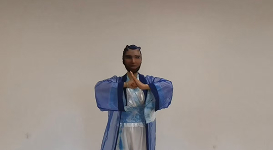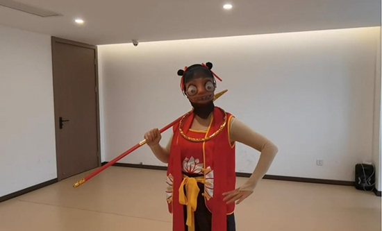 緊接著,阿姨們充分發(fā)揮自己的舞蹈才藝,來了一段情景舞蹈表演。在天雷滾滾的配樂聲中,阿姨們時而簇擁著哪吒齊舞,時而由敖丙、太乙真人和哪吒來個互動,時而配合哪吒獨舞,“哪吒”丁阿姨居中舞動火尖槍,旋轉、踢腿,動作剛勁有力,將哪吒面對強敵時的無畏與果敢展現得淋漓盡致。整個COSPLAY秀演阿姨們活力四射,將電影中的動作元素和現代流行舞蹈風格融合在一起,跳出獨特魅力。