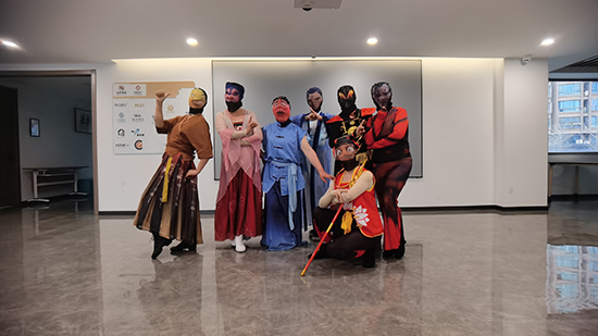 活動現場,潮阿姨們扮成的哪吒、敖丙、太乙真人、申公豹等角色驚艷亮相。開場的自我介紹,阿姨們就通過生動的肢體動作,將角色的性格特點如石磯娘娘的自戀、太乙真人的憨厚、申公豹的桀驁展現得淋漓盡致。特別是扮演哪吒的丁阿姨,丸子頭配紅肚兜,脖掛乾坤圈,手持火尖槍,活脫脫一個狂傲的哪吒三太子,而身著藍色長袍的敖丙扮演者鄭阿姨,氣質優(yōu)雅,盡顯角色的溫潤。