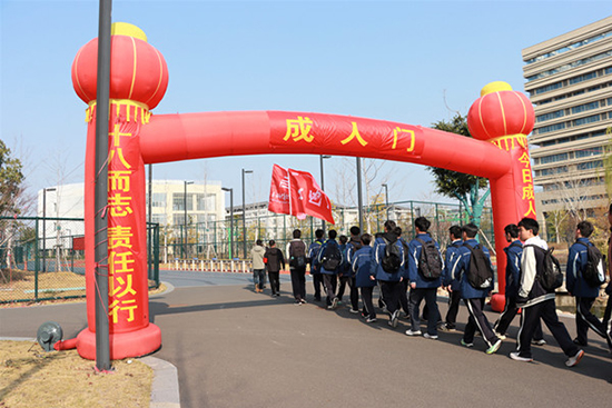 毅行結(jié)束后,學(xué)生從西門有序通過成人門進(jìn)場(chǎng),正式步入成人儀式環(huán)節(jié)。在成人門旁,設(shè)置了莊重的簽名墻,同學(xué)們依次上前,鄭重地簽下自己的名字,每一筆每一劃都飽含著對(duì)未來的期許與承諾。當(dāng)踏入成人門的那一刻,仿佛有一種無形的力量注入到每一位同學(xué)的心中,他們帶著對(duì)未來的憧憬與期待,吶喊著沖過成人門,那激昂的吶喊聲,如同戰(zhàn)鼓擂動(dòng),久久回蕩在校園上空,彰顯著他們邁向成人的堅(jiān)定決心。