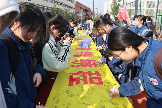 正午時(shí)分,曖陽如春,近900名高三師生整齊列隊(duì)在學(xué)校田徑場(chǎng)上。副校長(zhǎng)吳永勝發(fā)表了熱情洋溢的動(dòng)員講話,他鼓勵(lì)同學(xué)們?cè)谝阈型局邪l(fā)揚(yáng)堅(jiān)韌不拔的精神,勇于挑戰(zhàn)自我、超越極限。