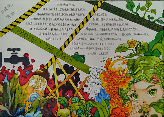 活動期間,學部面向全體學生征集環保主題創意作品,共收到手工藝品、繪畫、短視頻等作品35余份。其中,由環保主題的手抄報、舊紙盒改造的“環保紙盒”樹葉展板等作品脫穎而出,彰顯了學生的創新思維與實踐能力。優秀作品在校內展廳集中展示,引發師生熱烈反響。