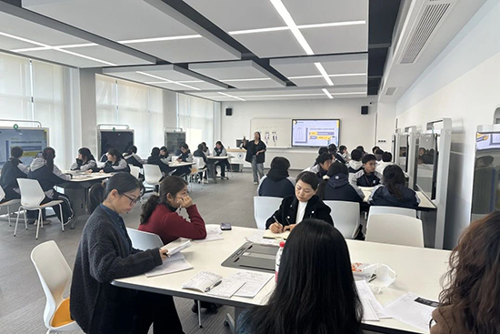 在教學展示環節,德清職業中專魯雯雯老師開設了一堂服裝制版《直筒褲“爆改”喇叭褲》公開課,課上巧妙利用AI視頻導入教學內容,通過層層遞進的小組探究方式,引導學生深入了解直筒褲與喇叭褲的款式特點,并動手繪制從直筒褲到喇叭褲的變化過程,課堂氛圍活躍,充分展示了服裝專業教育方面的創新與實踐。