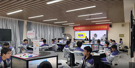會(huì)議期間,與會(huì)者實(shí)地考察臨平職高機(jī)電、數(shù)控、汽修等專業(yè)“教學(xué)工廠”式實(shí)踐中心,重點(diǎn)觀摩人工智能創(chuàng)新實(shí)驗(yàn)室的校企共建成果。